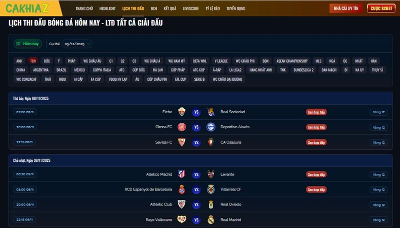 Giao diện của Cakhia được tối ưu để mang đến sự gọn gàng và dễ sử dụng. Từ thanh tìm kiếm, danh sách trận đấu đến lịch thi đấu và link trực tiếp đều được bố trí rõ ràng, giúp người dùng dễ dàng thao tác ngay cả khi lần đầu truy cập. Với triết lý “ai cũng có thể xem bóng đá chất lượng cao”, Cakhia mang đến sự giản đơn nhưng hiệu quả, điều mà nhiều nền tảng khác còn thiếu.