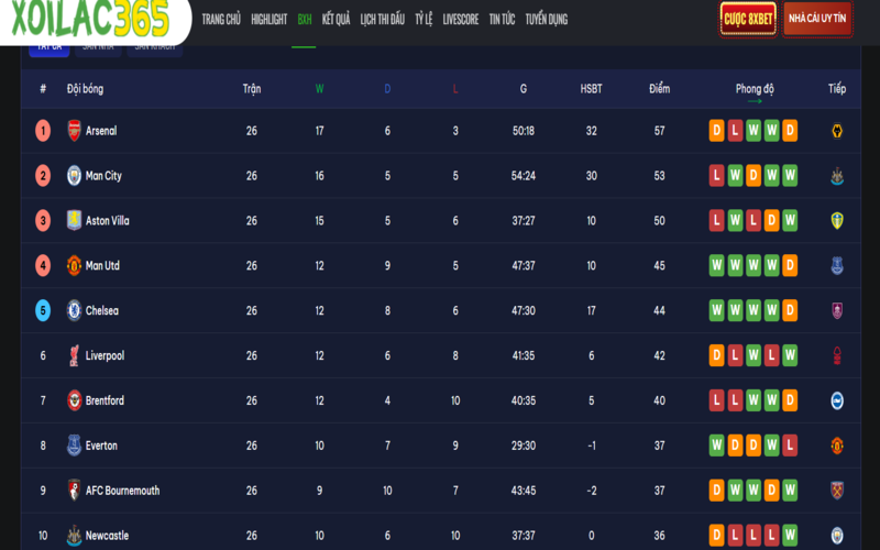Nhờ cách bố trí hợp lý giúp người dùng không chỉ xem thứ hạng mà còn phân tích sâu hơn về xu hướng phong độ và khả năng cạnh tranh của mỗi câu lạc bộ.