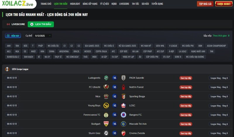 Đặc biệt, Xoilac TV là một trong số ít trang có lịch bóng đá hôm nay của các giải châu Á và Việt Nam rất đầy đủ, phục vụ anh em yêu V-League hay đội tuyển Việt Nam.